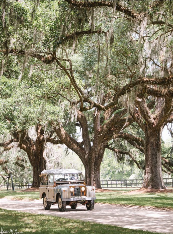 "Boone Dog Rover" photo print of Land Rover and Oak trees in Charleston, SC.